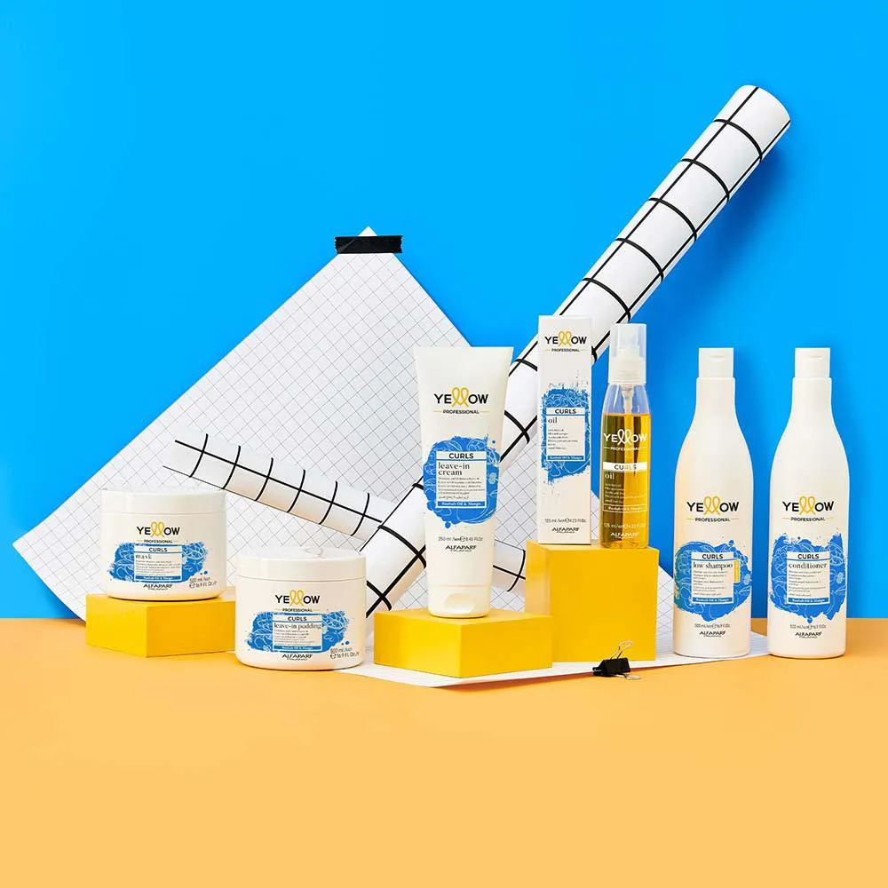 A linha yellow curls foi desenvolvida para tratar especialmente das mulheres que assumem e tem orgulho de seus cachos. Curls garante 86% a mais de hidratação, mais 52% de disciplina e menos 75% de frizz em até quatro dias, mesmo em condições extremamente úmidas. Sua fórmula é 100% natural e rica em princípios ativos que oferecem leveza e brilho. A manteiga de manga e o óleo de baobá se unem numa mistura precisa que é indicada exatamente para os cabelos cacheados, onde muitas vezes são secos e frisados, proporcionando uma hidratação perfeita.