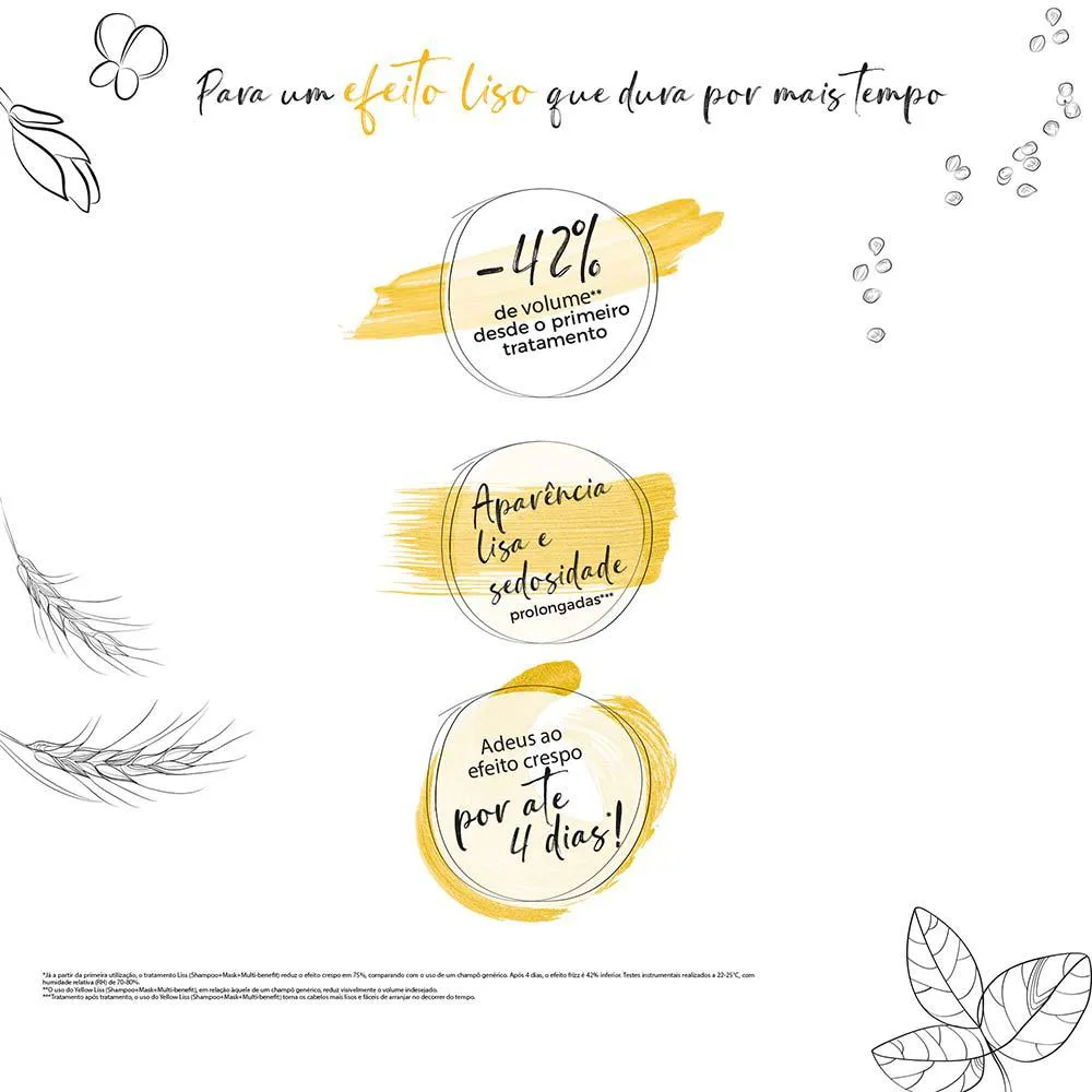 A nova linha Yellow Liss é dedicada a cabelos rebeldes e indisciplinados,que precisam de ajuda extra para ficarem perfeitamente lisos por muito tempo, mesmo em condições extremas.