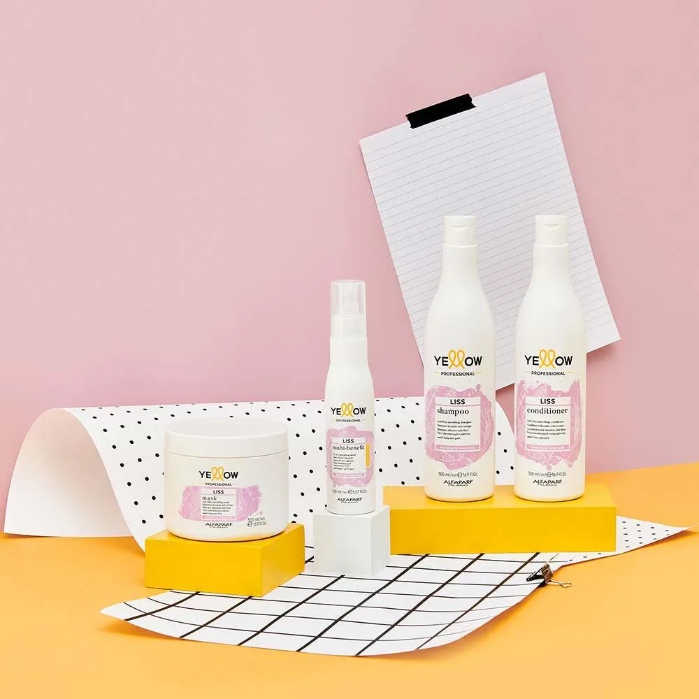 O Yellow Liss condicionador é um precioso aliado para domar os cabelos ondulados e sem controle. A sua textura delicada suaviza e alisa a superfície do cabelo sem pesar. adeus ao efeito frizz, redução drástica de volume e cabelos perfeitamente maleáveis. indicado para um uso diário.