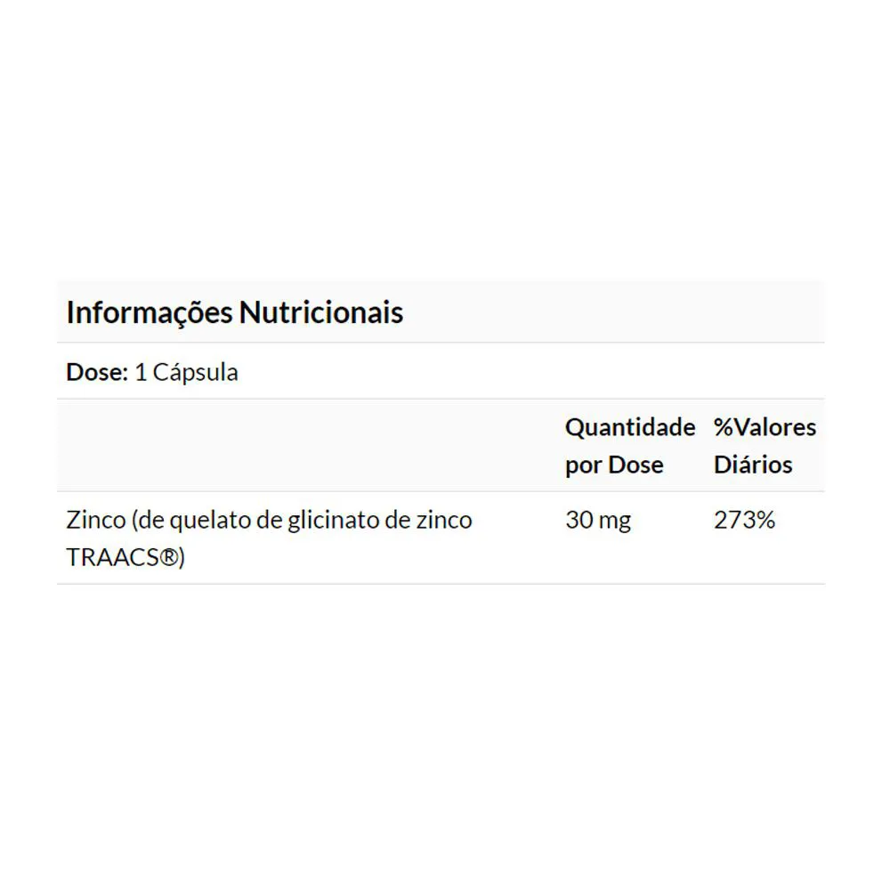 Zinco Quelato 30mg Swanson 90 Cápsulas O Zinco Quelado é um mineral com papel fundamental no bom funcionamento do organismo, uma vez que atua no funcionamento do sistema imune e reprodutivo, no metabolismo das proteínas, carboidratos e possui ação antioxidante, estando envolvido em diferentes processos; já que desempenha um papel importante em mais de 300 enzimas no corpo. Disponível em cápsulas de 30mg que podem ser facilmente ingeridas, esta fórmula permite com que você possa complementar de maneira prática e eficiente sua dieta alimentar com as quantidades necessárias desta substância tão importante; Outros ingredientes: gelatina, glicina, ácido cítrico, sílica, estearato de magnésio. Cuidados: Mantenha fora do alcance das crianças, nunca usar se o selo sob a tampa estiver rompido ou violado; Uso sugerido: Tomar 1 cápsula por dia. Apenas para adultos, busque orientação antes de usar este produto se estiver grávida ou amamentando; Itens inclusos 1x Frasco com 90 cápsulas Vide Validade