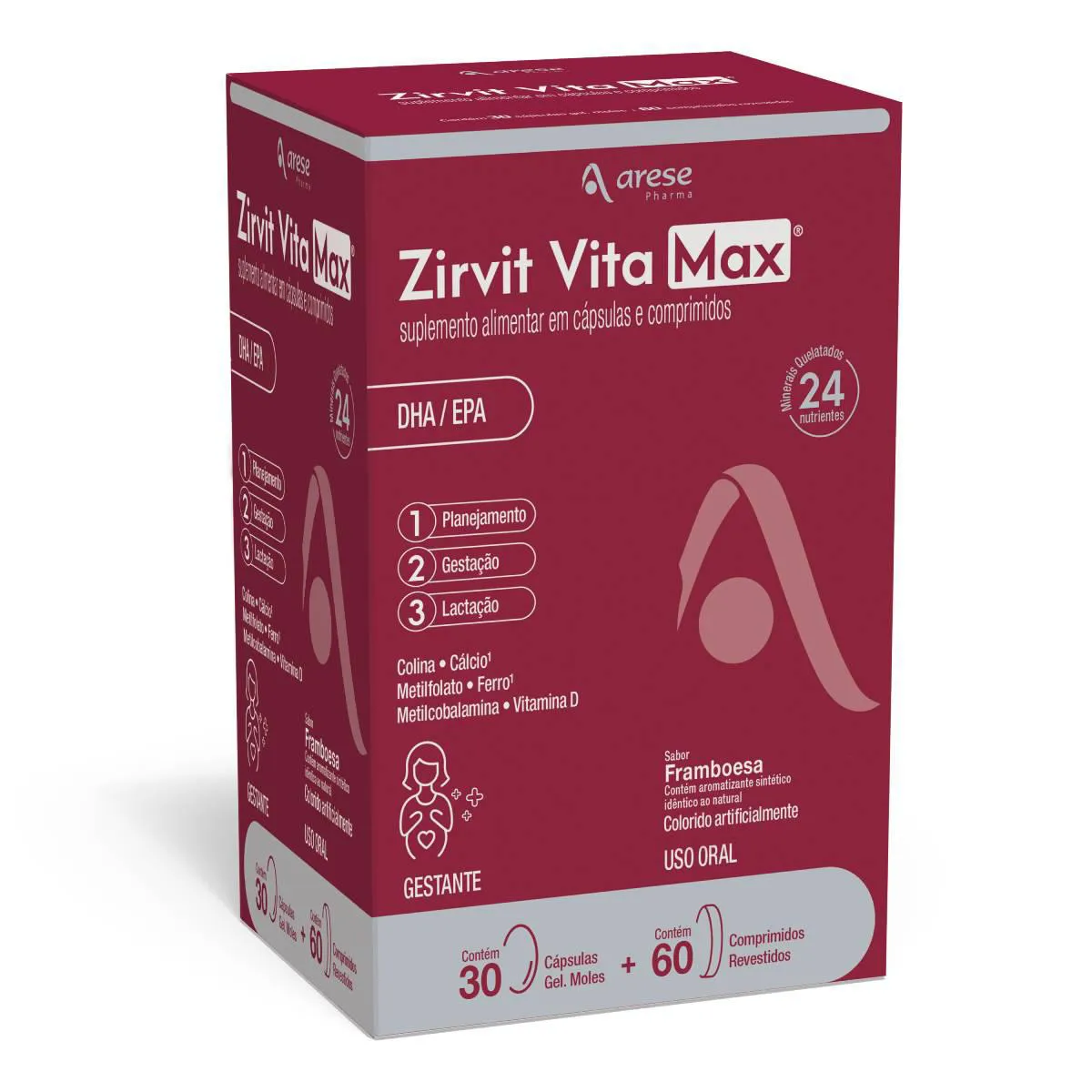 Zirvit Vita Max é um suplemento alimentar desenvolvido especialmente para atender às necessidades nutricionais nas fases de pré-concepção, gestação e lactação. Sua fórmula completa reúne 24 nutrientes essenciais, incluindo vitaminas, minerais, DHA, EPA (ômega 3) e colina, auxiliando no suporte nutricional do organismo materno.