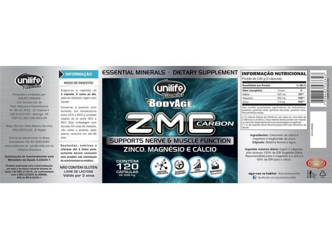 O que é o Zinco Magnésio e Cálcio ZMC Carbon da Unilife?