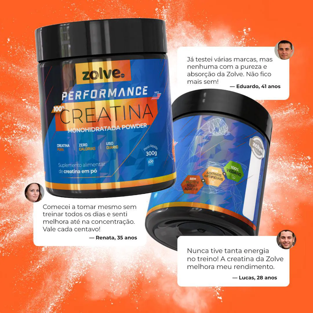 Zolve Performance Creatina é um suplemento em pó de creatina monohidratada pura, sem aditivos, indicado para atletas e praticantes de atividades físicas que buscam otimizar a performance em exercícios de alta intensidade e curta duração. A creatina atua como reserva rápida de energia para o músculo, permitindo maior força, potência e melhor recuperação entre os treinos.